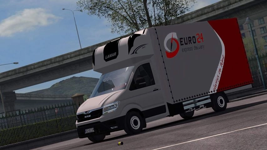 You already know we’ll get your shipments anywhere in Europe. Now we’ll make it happen even in virtual reality. We present the designs of our cars, created by a group of young enthusiasts in Euro Truck Simulator 2. Euro Truck Simulator 2 is a computer simulation game, created by SCS Software. The game was released in 2012 and was hailed by the editor of PC Gamer magazine as the best simulation game of the year. The game is a very realistic recreation of the driver’s profession. The player can transport various types of cargo to over 60 European cities while testing different models of delivery vans. In the game, you can use virtual money to set up your own transport company, and on subsequent levels, you can develop it by expanding your fleet of vehicles. Vehicles can be tuned, maintained, repaired and refuelled. As is the case in real life, the driver must also recuperate during longer breaks, and pay motorway tolls. Two young players have created EURO24 car models in the game. How do you like them? 🙂 We encourage you to enjoy the game, and we would like to thank Maciek and Miłosz for their designs! The author of the designs is our driver Dominik!